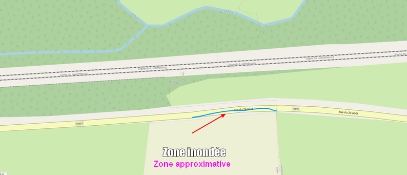 Première zone à Rulles sur la N 897, le creusement d’un fossé devrait déjà, à mon sens, régler quelque peu le problème.