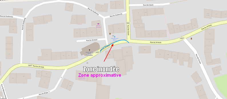 Zones inondées observées ce vendredi soir de 17h30 à 20h00