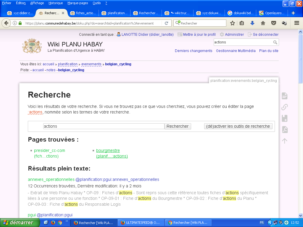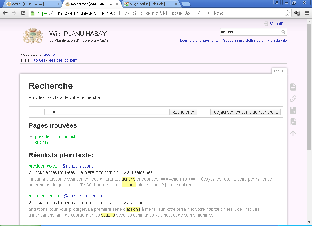bourgmestre (planif…:actions)apparait dans le résultat. - Puisqu'aucune page du même nom n'existe, un lien
